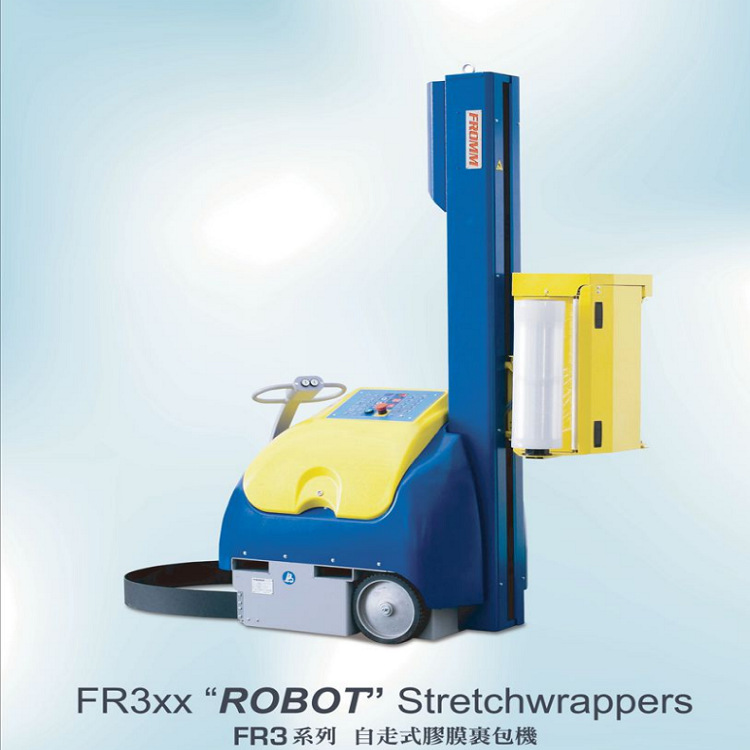 自走式棧板裹膜機FR,在電池完全充電情況下,可纏繞220個棧板。自走式棧板裹膜機FR型號:FR33x、FR35x、FR39x、FR40x。
