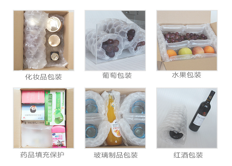 針對產品的緩沖填充需求而研發的氣墊制造機其生產的緩沖氣墊尤其適用于箱包、手袋等行業。它能避免用傳統方式填充時產生碎屑的情況;填充簡易、提高效率;而且可以使箱包、手袋、鞋類、的外形美觀持久不變。除此之外緩沖氣墊還被廣泛用于精密儀器儀表、電子、線路板、燈飾、連接器、禮品、瓷器、家俱、食品、飲料、醫藥用品、影音商品、化妝品、電視產品等諸多行業包裝物品之保護。