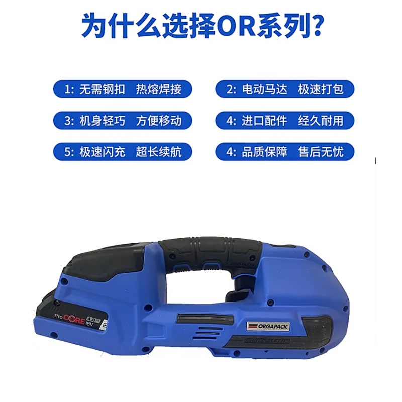 ● 該款打包機配備雙電池設計,可以持續長時間使用,大大提高了工作效率。用戶不必頻繁更換電池,這使得在繁忙的工作環境中更加便捷。雙電池的配置也意味著更少的停機時間,為用戶節省了大量的時間和精力。